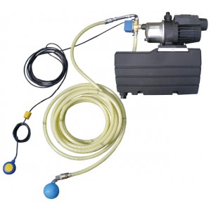 Set pompa domestica Grundfos (codice 9137) - Flusso: 3 m3 / h; Livello di pressione Max: 15 m, Max pressione di esercizio: 7,5 bar; Potenza in ingresso: 660 W. Serbatoio provvisorio (utilizzato per scopi di sicurezza del sistema, in modo da non sovraccaricare la rete di distribuzione dell'acqua). Un galleggiante dotato di un cavo di 15 metri. Un tubo di aspirazione di 15 metri con un galleggiante. Un filtro in acciaio e valvola di non ritorno. Valvola miscelatrice.